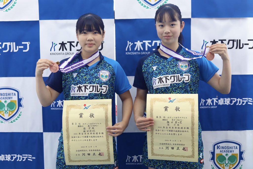 ・女子ダブルス:南芹那・飯田莉々花ペア 3位