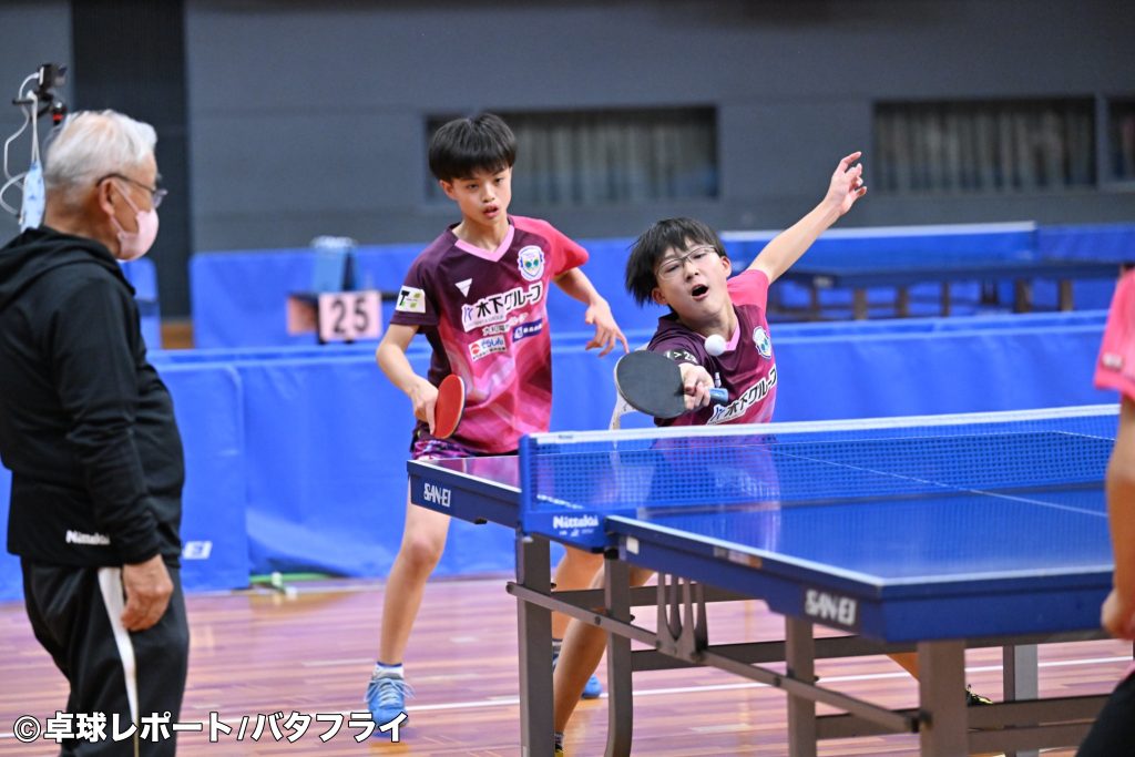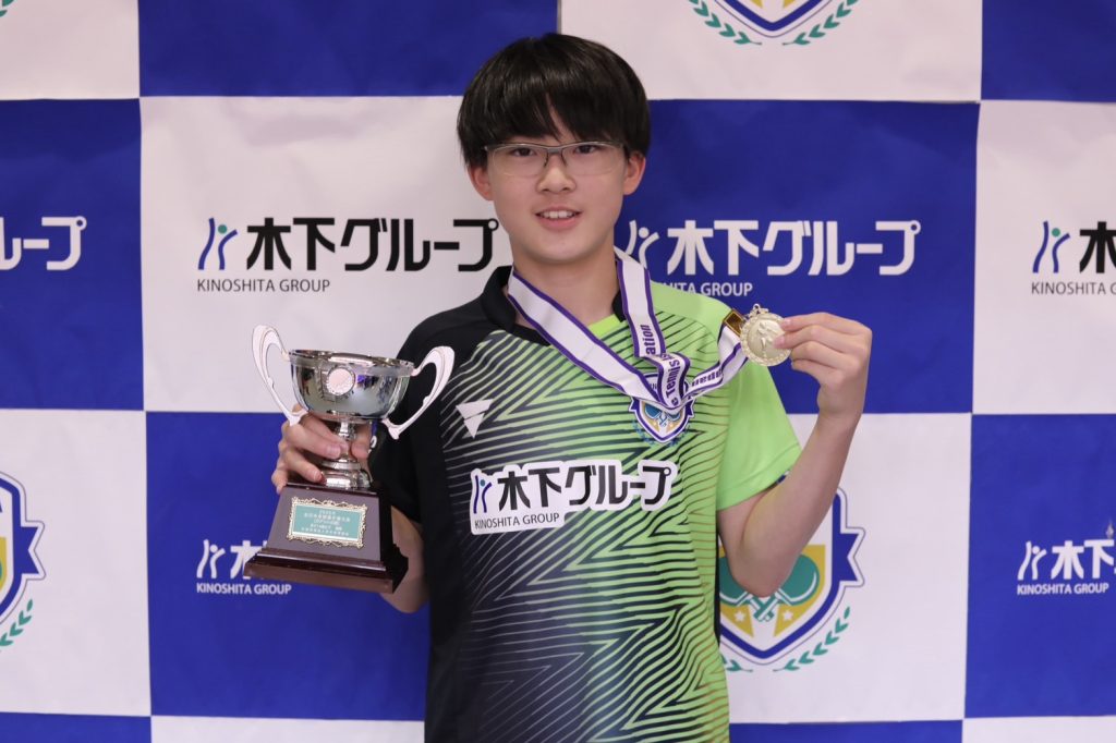 今大会は二冠を目指して、男子ダブルスで優勝、14歳以下シングルスは2位という結果でした。
