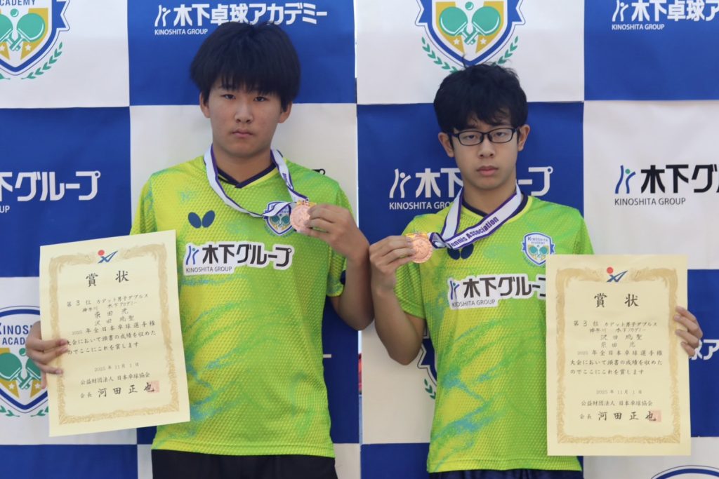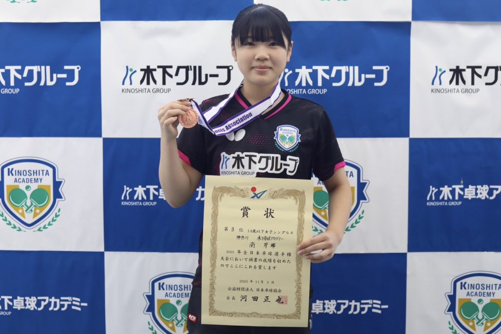 「JOCジュニアオリンピックカップ 2025年全日本卓球選手権大会(カデットの部)」において、以下の成績を収めました。