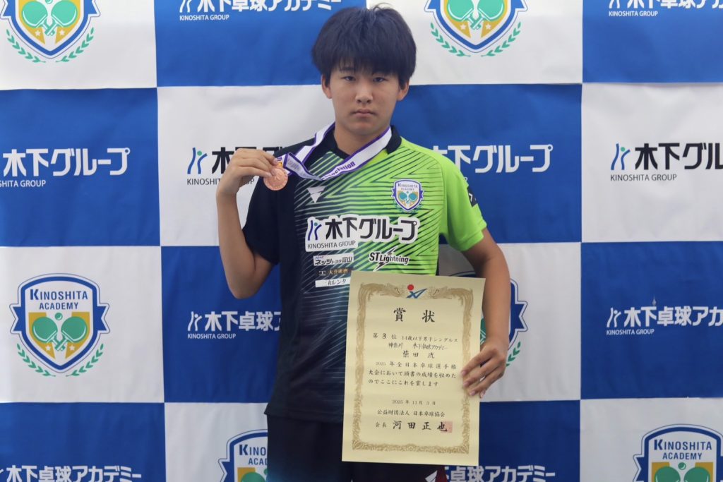 今大会は、14歳以下シングルス、男子ダブルスともに優勝を目指していましたが、どちらも3位という結果でした。